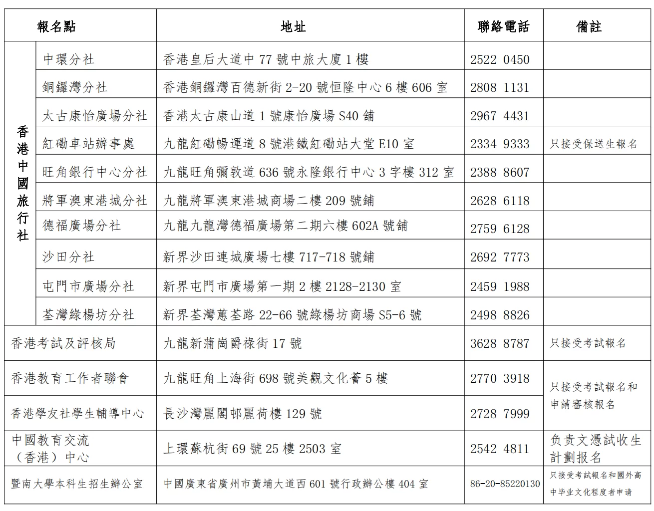 註:上述日期及事項或有更新,將在暨南大學招生辦公室官網公佈。