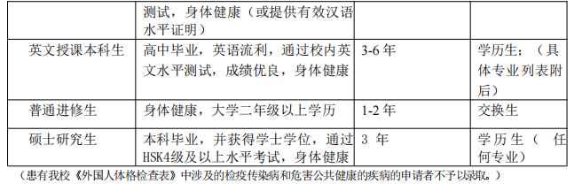 (患有我校《外国人体格检查表》中涉及的检疫传染病和危害公共健康的疾病的申请者不予以录取。)