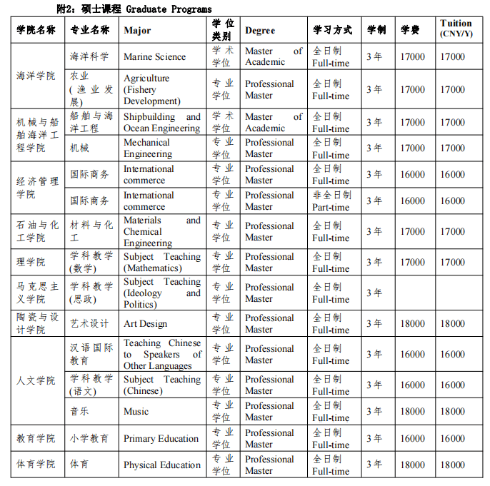 我校所有硕士专业均对中文授课专业来华留学生开放。学制3年。(硕士课程见附表2)