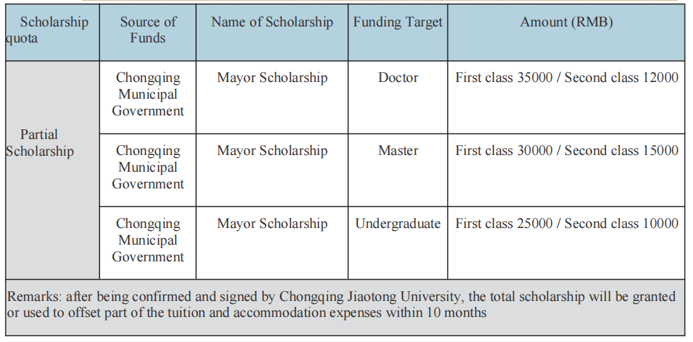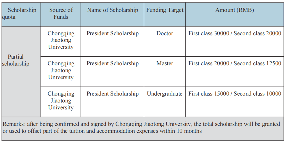 Chongqing Jiaotong University can accept four types of scholarship students, and international students who meet the requirements can choose to apply
