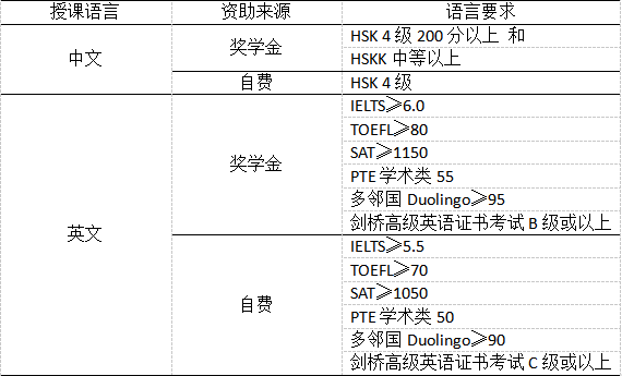 申请人母语为中文,或在中国完成高中阶段教育。