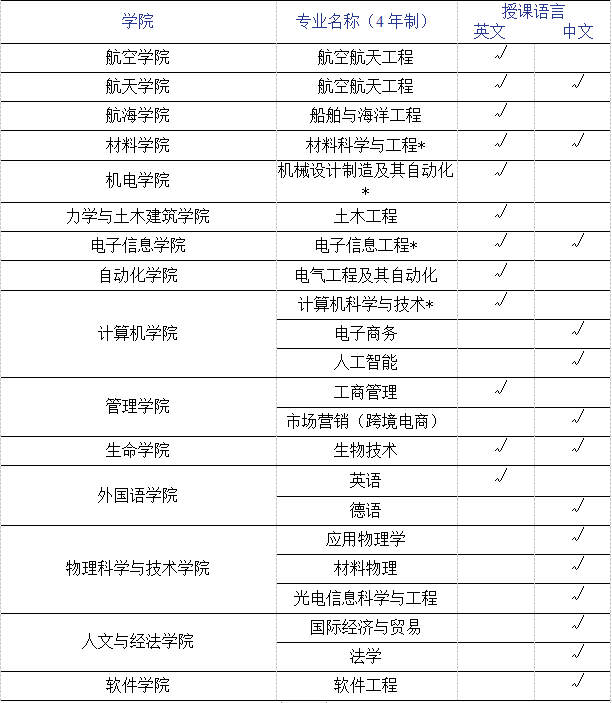 09国际学生本科专业一览表