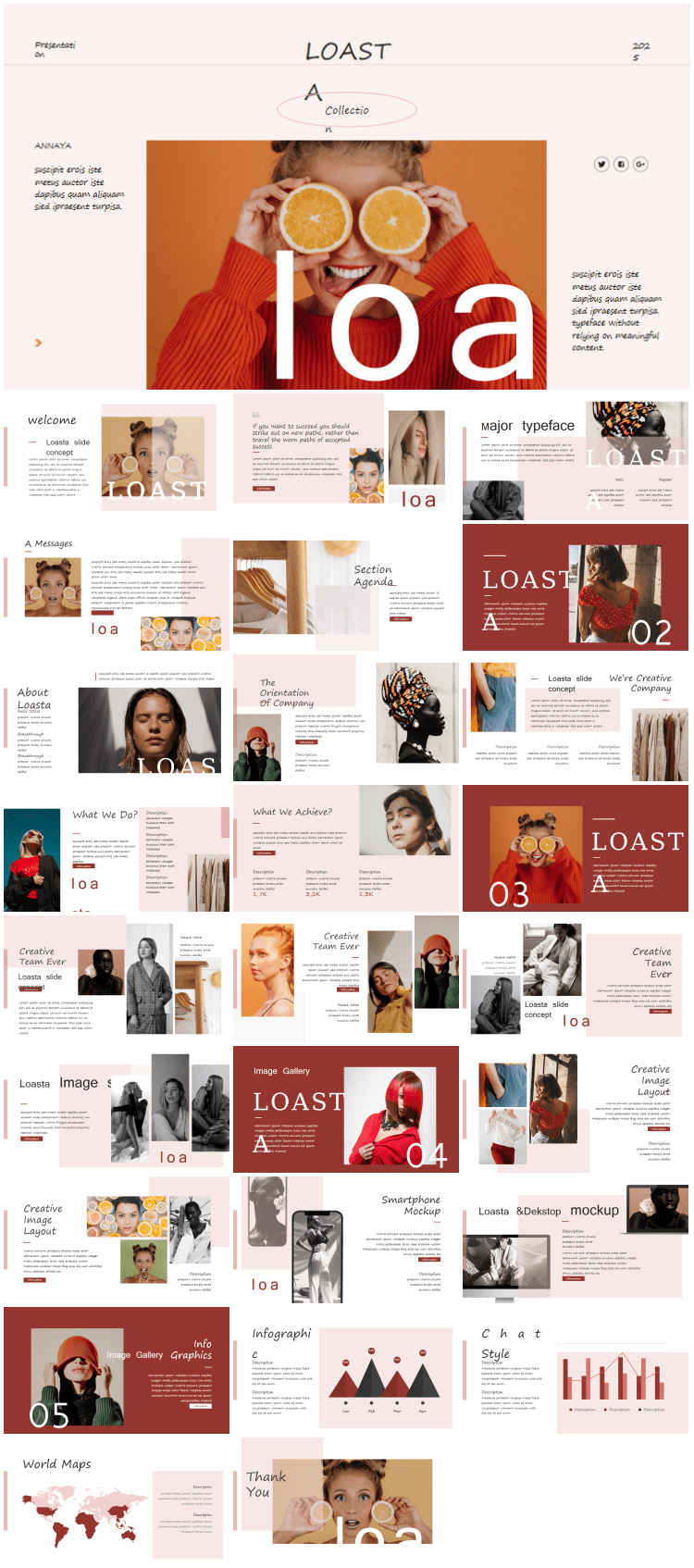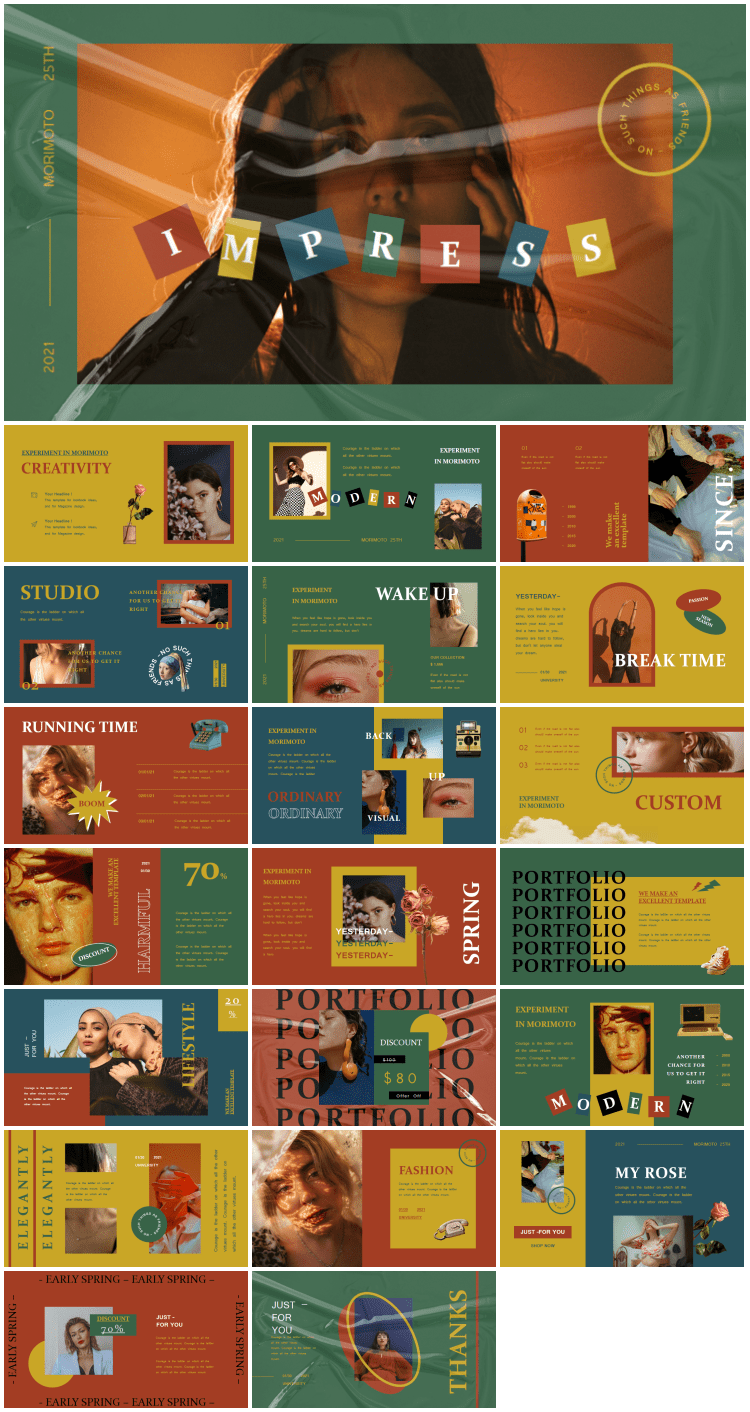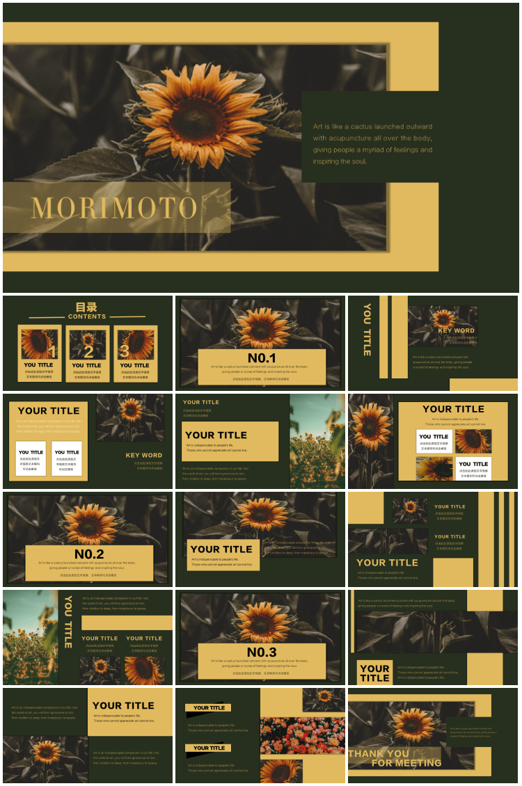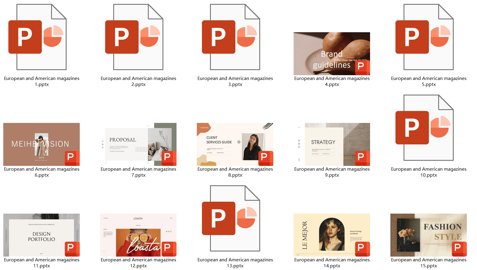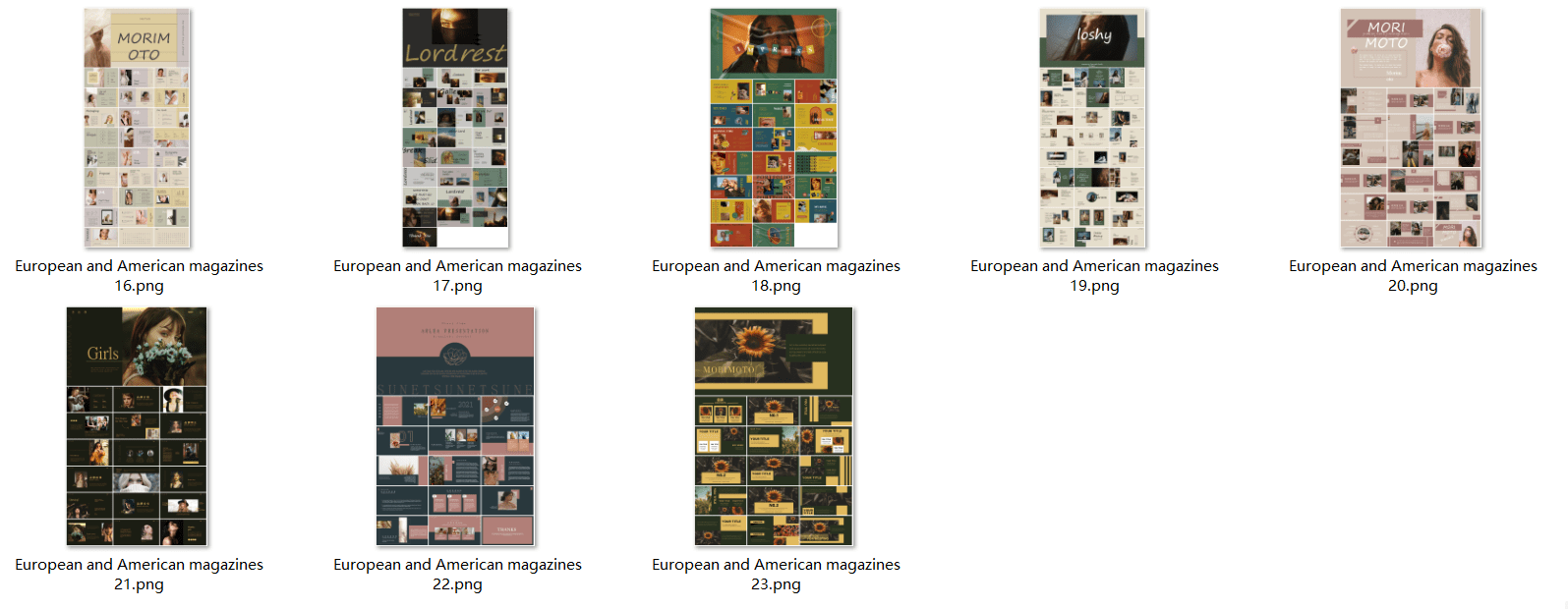 There are totally 23 templates of Powerpoint, with the style of European and American Magazines, they are just for those who loves the design and arts.