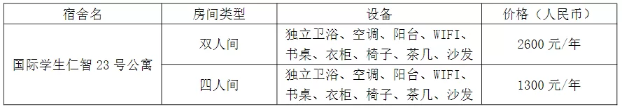 The university has set up an interational student apartment for intermational students. The apatment also has a kitchenactivity room, study room, etc. with complete facilities, it can meet the leaing and living needs of interational students. Theschool takes into account the majors, beliefs, hobbies and other factors of intemational students, and arranges roommates for