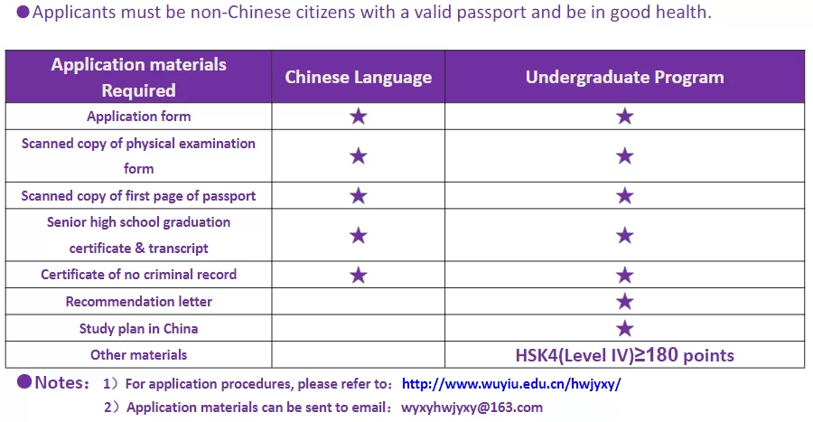 Address: Room No.305B(Admission Office),Building Tongwen 6, Wuyi University,No.358Baihua Road,Wuyishan,Nanping,Fujian Province, China
